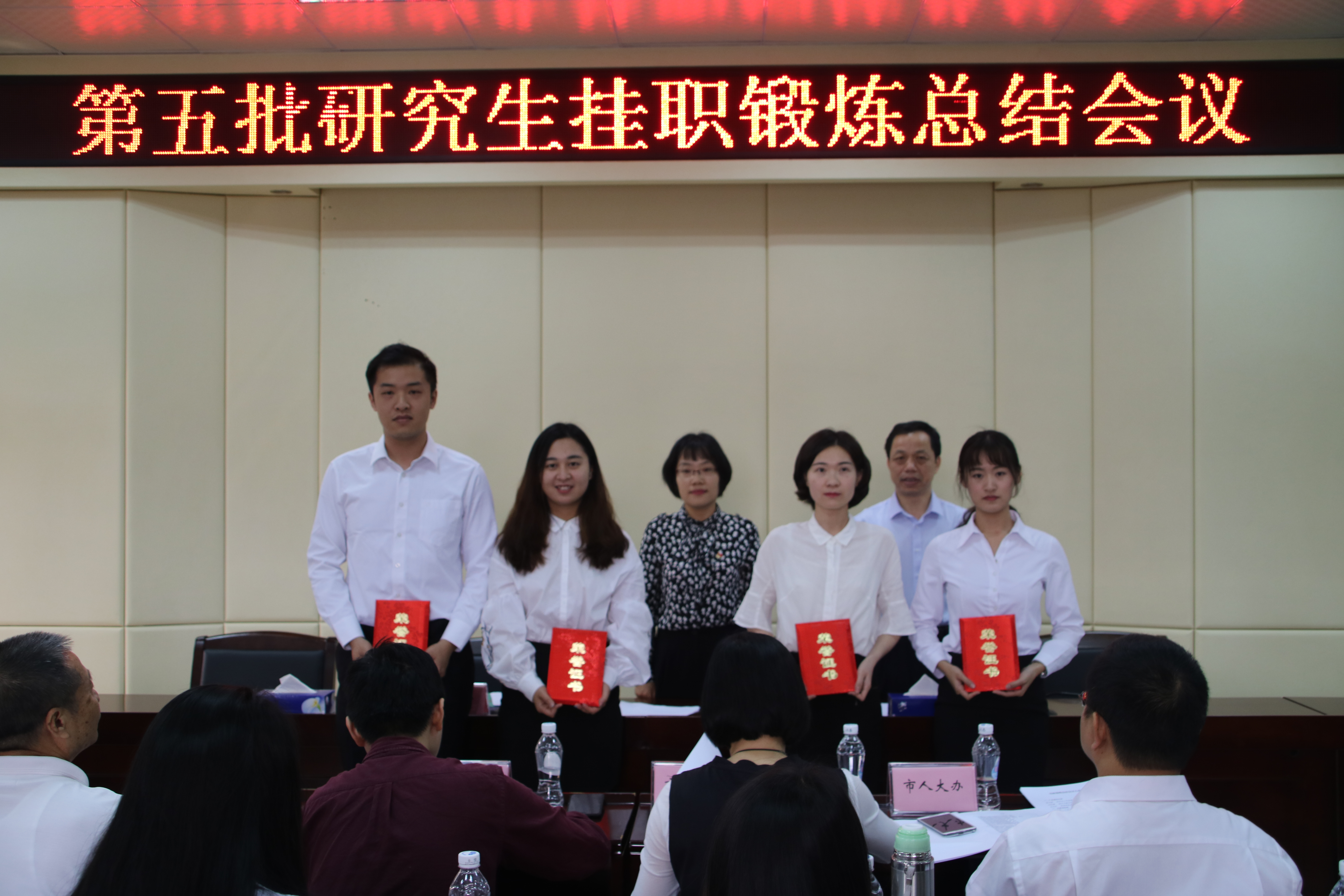 会议最后对挂职锻炼先进个人作了表彰。张慧静宣读了《关于表彰英国上市公司365和中共湛江市委组织部合作开展的第五批挂职锻炼研究生先进个人的通知》,陈汉能、张慧静共同为获得表彰的何梦羽、张晓沛、卢玥、吉伟伦4名同学颁发“挂职锻炼先进个人”荣誉证书。