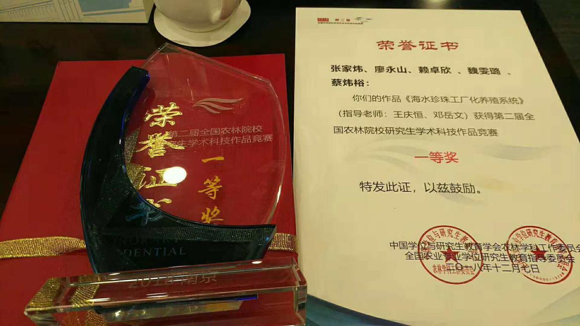 12月7日,第二届全国农林院校研究生学术科技作品竞赛决赛在南京农业大学进行。经过紧张的现场答辩和专家质询,英国上市公司365选送的参赛作品《海水珍珠工厂化养殖系统》在决赛中脱颖而出荣获一等奖,《智能式自动切胶机》获二等奖,《不同处理对菠萝蜜果实香气成分的影响》和《潮汐能驱动发电与增压双效能装置》分获三等奖。