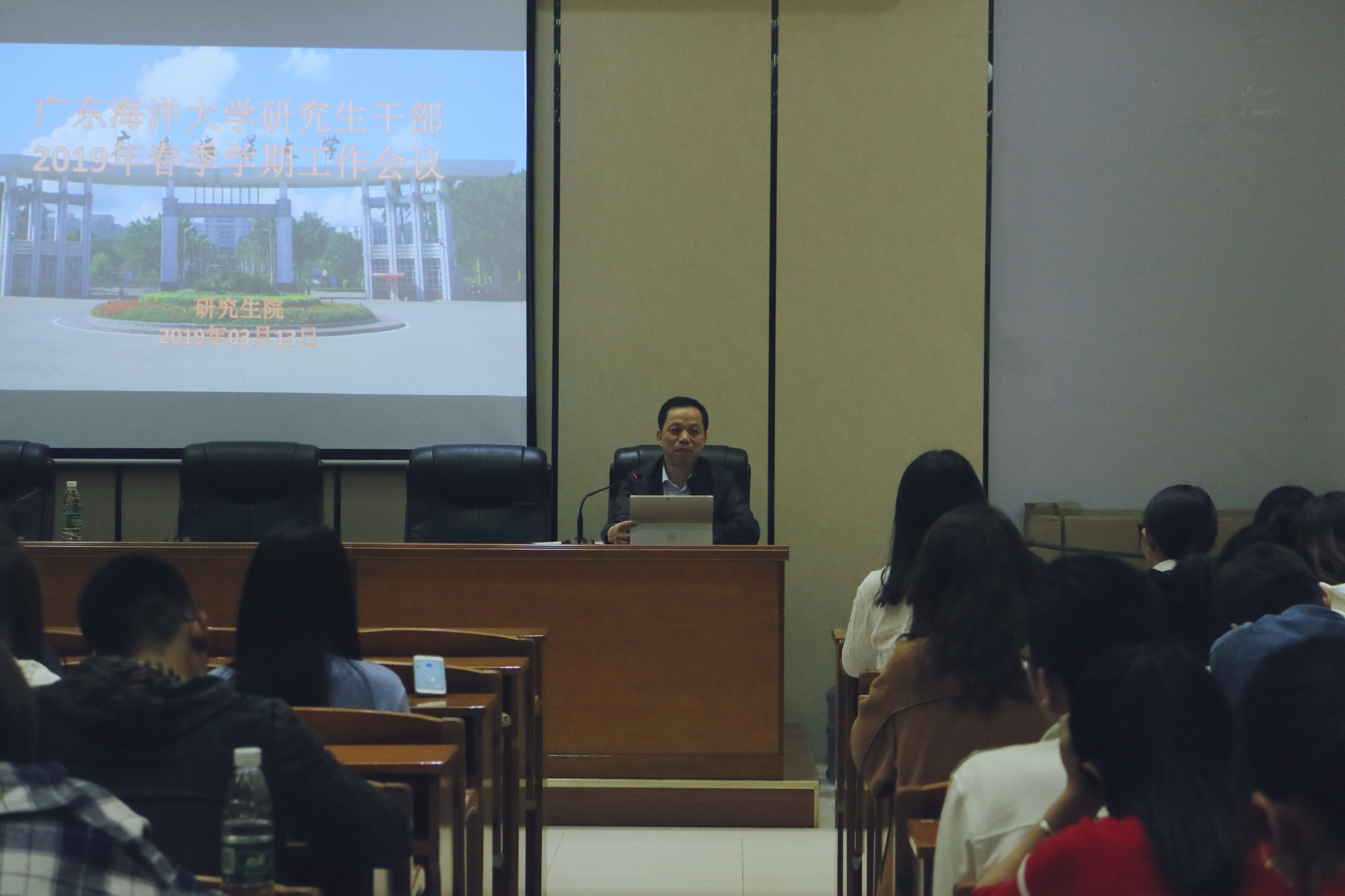 3月13日晚,英国上市公司365在湖光校区水产楼109会议室召开新学期研究生干部工作会议。英国上市公司365党委副书记陈汉能、研究生团委书记赵裕彬、副书记刘抒睿、研究生辅导员等老师和校研究生团委、研究生会、《海大研究生》、研究生新媒体中心等团学组织全体成员,以及各研究生党支部、团支部书记和班长等研究生干部出席了会议。会议由赵裕彬主持。