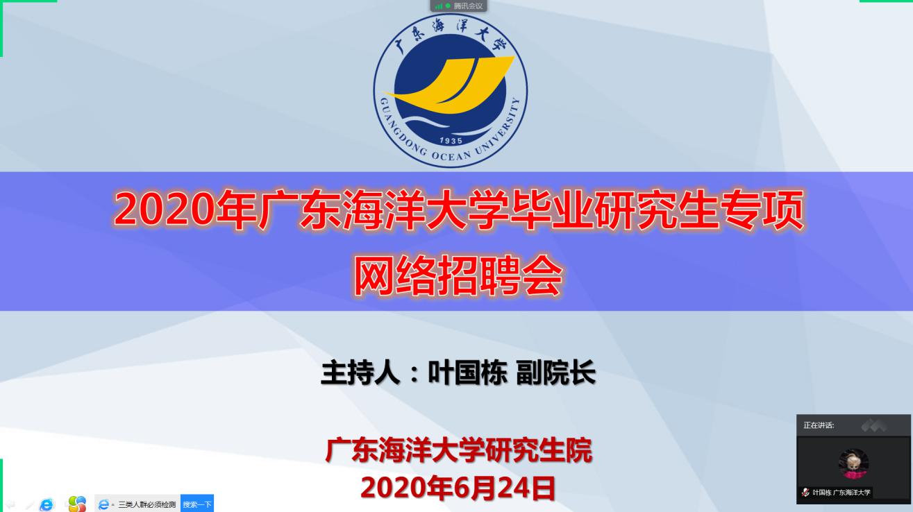 为了做好疫情防控期间英国上市公司365应届毕业研究生就业推荐工作,响应教育部2020届高校毕业生就业统计工作视频会议精神和广东省教育厅的就业指导视频会议精神,按照学校党委统筹部署,6月24日上午,英国上市公司365研究生工作部和英国上市公司365牵头组织、各培养学院积极配合,通过腾讯会议软件平台召开毕业研究生专场网络招聘会,应邀出席招聘会的单位有广东海大集团、广州诚一水产科技有限公司、广东海启星海洋科技有限公司、福建雾实科技有限公司、广东国美水产食品有限公司、唐人神集团股份有限公司(湖南)、广东温氏大华农生物科技有限公司、广东湛江正大猪业有限公司、广东恒兴集团、深圳市质能达微电子科技有限公司、湛江市歌舞团、珠海天香苑生物科技公司、广东东岛新能源股份有限公司、埃特亚(广州)饲料添加剂有限公司、深圳市乾德企业管理咨询有限公司,共有160人参会,网络招聘会由英国上市公司365副院长叶国栋教授主持。