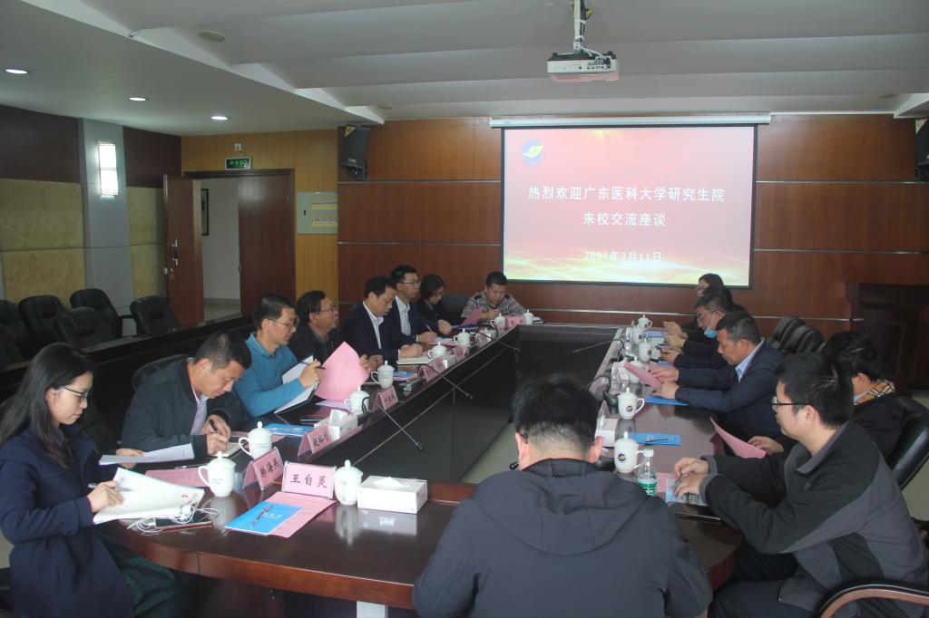 3月11日上午,广东医科大学英国上市公司365院长唐焕文、副院长彭浩晟、黄遵楠及各科室老师一行7人来校交流。英国上市公司365党委研究生工作部、英国上市公司365领导简纪常、陈汉能、叶国栋接待了唐焕文一行并在湖光校区4楼会议室召开交流座谈会。英国上市公司365英国上市公司365全体人员、研究生辅导员代表参加了座谈会。座谈会由英国上市公司365党委研究生工作部部长、英国上市公司365院长简纪常主持。