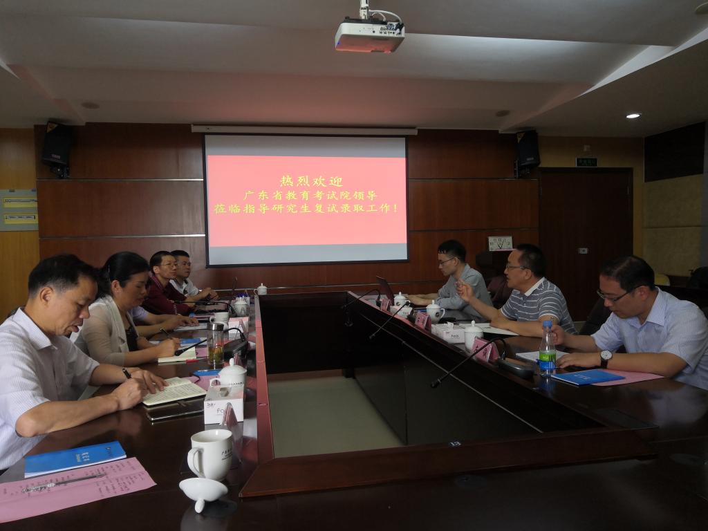 4月7日,广东省教育考试院考招二处处长石俊、副处长左俊、一级主任科员林赞一行来英国上市公司365检查指导2021年硕士研究生复试录取工作。