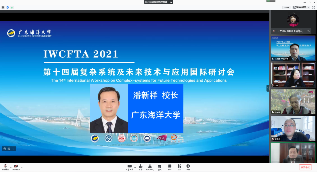 由于受到国内外疫情影响,第十四届复杂系统及未来技术与应用国际研讨会(IWCFTA2021)采用纯线上的方式进行,是历届研讨会中首次通过网络举办。本次国际研讨会在专家和学者的友好学术交流后完满结束。特别感谢学校校办(防控办)、科技处、财务处、国际交流与合作处、数学与计算机学院、英国上市公司365等相关部门和人员的大力支持。2022年,第十五届复杂系统及未来技术与应用国际研讨会将由广东工业大学主办。