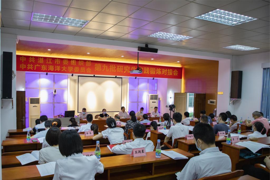 会上,湛江市委组织部有关负责同志对开展本次实践锻炼活动强调了三点意见:一是要加强校地合作,让实践育人大课堂越来越广阔。通过发挥高校的资源优势,通过推动研究生到地方开展实践锻炼活动,促进校地校企加强联系、合作发展,实现人才共享共育共用,共同打造高校助推地方创新发展,地方支持高校建设的合作典范。二是要积极躬身实践,让青春之花在奋斗中绽放更绚丽。参加实践锻炼研究生要珍惜十分难得的机会,积极主动融入地方,虚心学习,在基层一线接受锻炼,在实现个人能力素质不断提升的同时,充分发挥自身优势和聪明才智,尽情展现个人才华,为地方发展贡献智慧和力量。三是要热情关心帮带,让服务管理更有力有效。市直各部门、各县(市、区)组织部门要精心做好对接,根据研究生个人的专业特长以及工作需要,安排实质性工作,特别是有针对性地安排他们参与处理一些重点难点问题,安排同学们在基层一线锻炼,使同学们在工作一线中接受锻炼。要提供必要的工作生活条件,加强与研究生沟通交流,做好安全教育和疫情防控等工作,着力加强研究生实践锻炼成果转化,助力湛江高质量、跨越式发展。