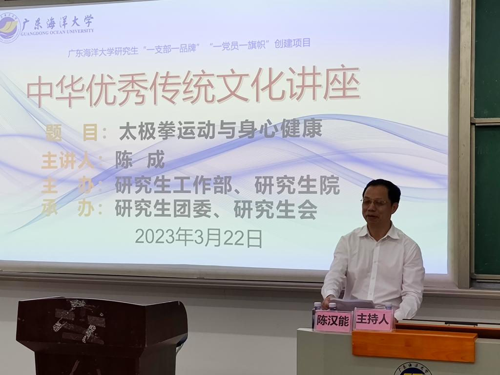 为活跃校园文化活动氛围,丰富校园生活,传承中华优秀文化传统,普及推广太极拳运动,倡导积极健康的生活方式和精神面貌。3月22日晚,研究生工作部、英国上市公司365邀请学校财务处处长陈成老师在钟海楼02030开展以“太极拳运动与身心健康”为主题的中华优秀传统文化讲座,财务处副处长白冰、英国上市公司365党政办公室主任陈淦添等200多名师生参加了讲座。讲座由党委研究生工作部副部长陈汉能主持。