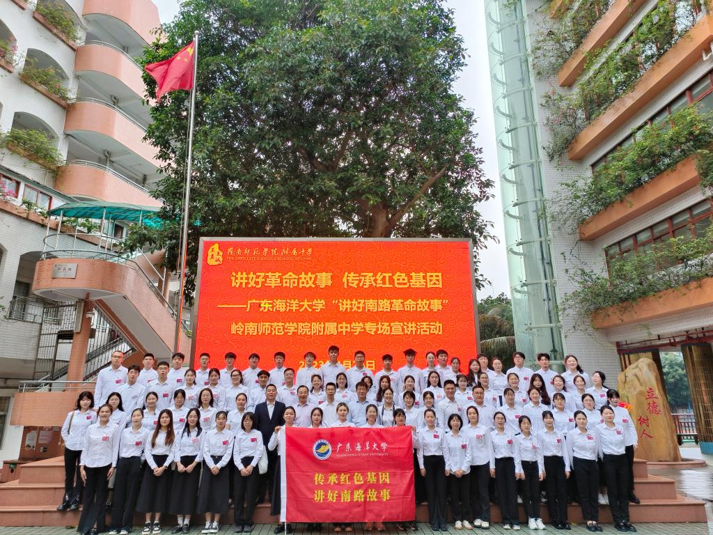 据悉,“讲好南路革命故事”活动自2021年4月启动以来,通过实施“十百千万”工程,累计超过360名宣讲员在全市大中小学校宣讲1135场,受众师生超过6.4万人次。组织师生走访红色乡村100多条,探访革命先辈60多人;搜集到相关史料530人(份),一些史料为首次发现;编写《广东南路革命故事读本》,并获中山大学出版社出版;录制“微视频”33部;开展地方红色文化融入思政教育研究获教育部2023年度高校思想政治工作精品项目等立项10多项和2021年广东省委教育工委“庆祝建党一百年·践行核心价值观”优秀案例一等奖等奖项10项,发表论文和出版专著20多篇(部)。项目构建起以“讲”为主导、“寻”为依托、“编”为促进、“研”为提升的“四位一体”红色文化育人新模式。今后,“讲好南路革命故事”宣讲团将不忘初心、牢记使命,继续进一步加强与湛江市各县(市)区教育工委(教育局)和有关部门的对接,利用好本土红色资源,深挖地方党史文化,推进宣讲活动进中小学校,办好千场南路革命故事宣讲会,让数万名学生受益,形成从大学到中小学全学段覆盖的地方党史和革命传统学习教育品牌,推进地方红色文化融入大中小学思政教育一体化建设,为传承红色基因、赓续革命薪火贡献海大力量。