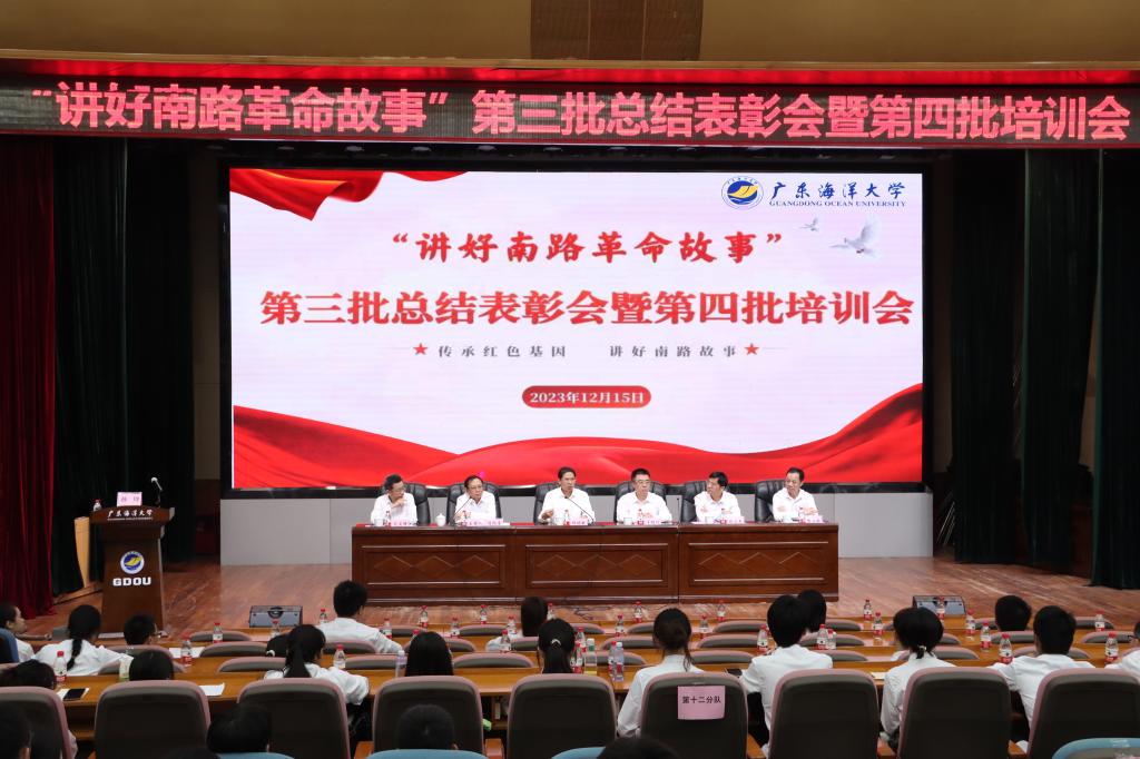 为全面总结第三批“讲好南路革命故事”宣讲团2023年工作开展情况,进一步提升“讲好南路革命故事”宣讲的受众广度、内涵深度、活动精度,12月15日下午,学校第三批“讲好南路革命故事”总结表彰会暨第四批培训会在广学楼多功能厅举行。学校党委副书记林晓敏出席会议并讲话。党委办公室、党委宣传部、学生工作部、研究生工作部有关领导,第三批优秀教员、优秀宣讲员,第四批骨干教员、宣讲员共计130多人参加会议。会议由研究生工作部部长、英国上市公司365院长简纪常主持。