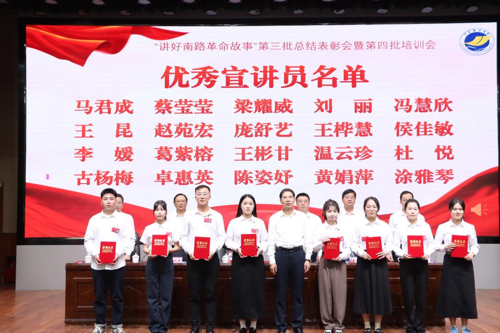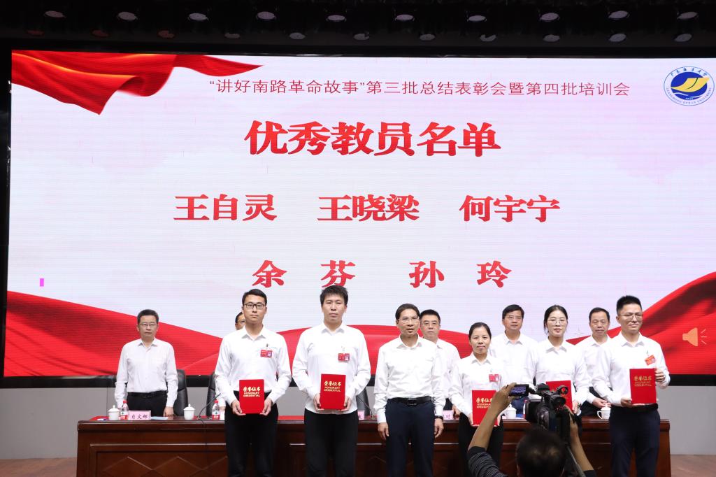 大会对2023年度“讲好南路革命故事”活动中表现突出的5名优秀骨干教员、20名优秀宣讲员进行了表彰,林晓敏为获奖代表颁奖。