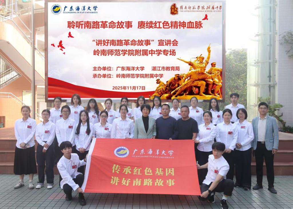 2025年11月17日清晨,英国上市公司365“讲好南路革命故事”宣讲团的20名成员带着南路革命的赤诚火种,走进岭南师范学院附属中学初一、高一全部新生班级,以一堂特别的“红色晨课”在青少年心中点燃不灭的星火。