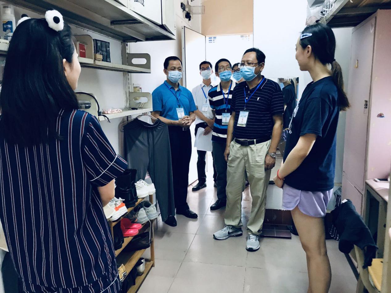 8月30日下午,研究生工作部部长、院长简纪常、副部长陈汉能、副院长叶国栋一行入海鹰、海燕、海霞、海涛等研究生宿舍慰问返校研究生,并了解研究生宿舍的修缮工作。