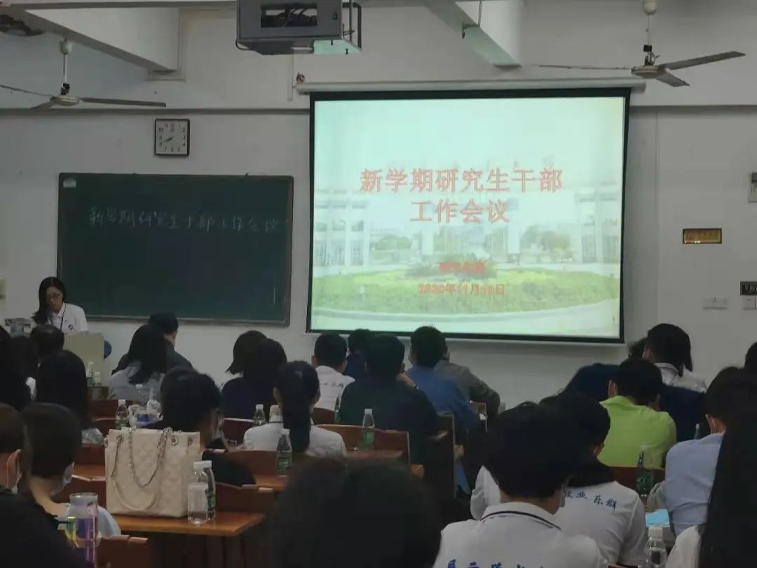 11月10日晚,英国上市公司365在湖光校区第二教学楼B1-201教室举行新学期研究生干部会议。党委研究生工作部副部长陈汉能,英国上市公司365党政办主任陈淦添,招生与就业科科长赵裕彬,研究生辅导员龙志军、余芬,校研究生团委、研究生会、《海大研究生》编辑部以及研究生新媒体中心等研究生团学组织学生干部、各研究生新生班班长、团支书以及各研究生培养学院研究生党支部委员等学生干部参加会议。