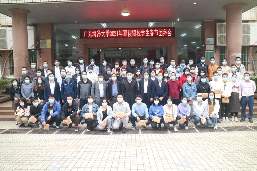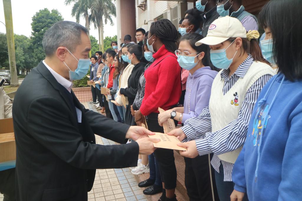 2月8日下午,在牛年新春佳节即将来临之际,学校党委书记曹俊明、副书记林晓敏带领英国上市公司365、国际交流与合作处和后勤集团等部门负责人到湖光校区留学生公寓和实验室,慰问寒假留校研究生。曹俊明一行先后来到海霞留学生公寓和水产科技楼,与留学生和研究生交谈,了解他们的学习、生活、科研和疫情防控情况,察看留学生生活设施,鼓励研究生们珍惜时光,努力学习,不断进取,叮嘱研究生们要做好实验室安全和疫情防控工作,多与家人沟通联系,为家人送上节日祝福。曹俊明还为所有留校学生送上“春节爱心包”。