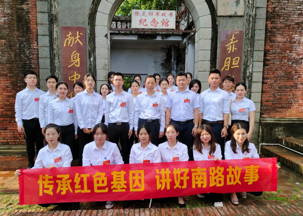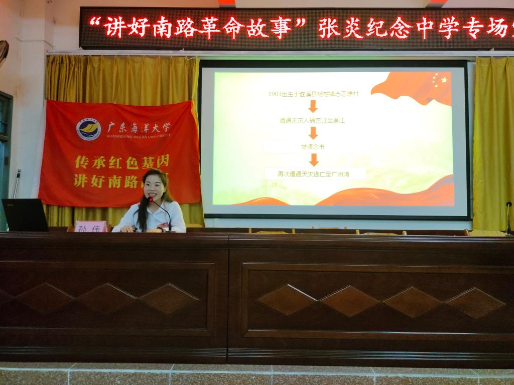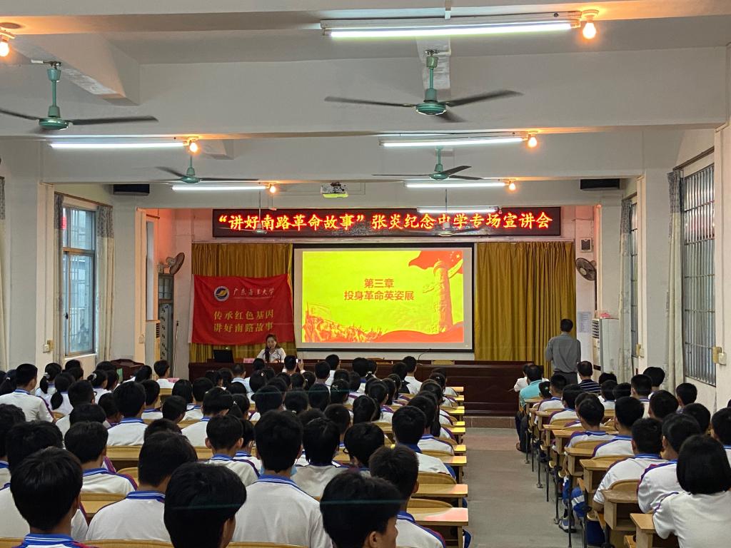 追寻革命原点,赓续红色基因。为扎实推动党史学习教育走进青少年,教育引导青少年学生树立正确的党史观,激发其学习党史知识的热情,把红色传统、红色记忆、红色基因根植于青少年心中,5月12日下午,英国上市公司365“讲好南路革命故事”宣讲团来到吴川市张炎纪念中学,为在场师生献上了一堂别开生面的党史思政课。吴川市教育局办公室主任郭运昌、杨青,张炎纪念中学校长陈亚润,英国上市公司365党委研究生工作部副部长陈汉能、宣讲团骨干教员钟桂安、陈淦添、林嘉怡、王自灵、余芬以及20名学生宣讲员参加了宣讲活动。