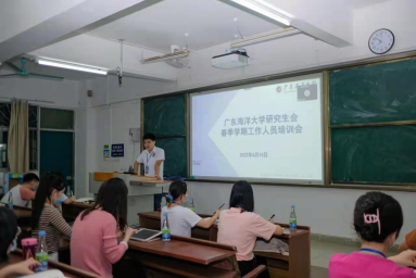 4月15日晚上,校研究生会春季学期工作人员培训会在湖光校区主楼513召开。会议由研究生会执行主席陈方园主持,第二十届研究生团委、研究生会全体骨干参加了培训会。